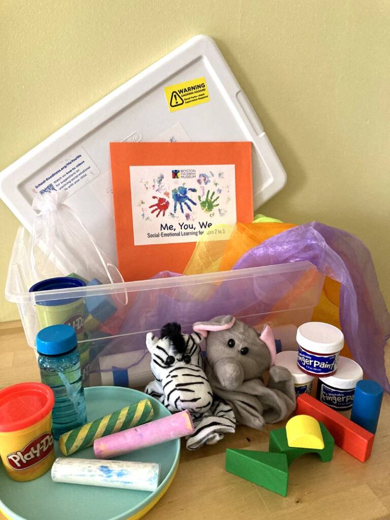 Me, You, We is a kit for children ages 2 to 5 and their caregivers. It’s filled with resources to help your child develop and practice their social-emotional skills.